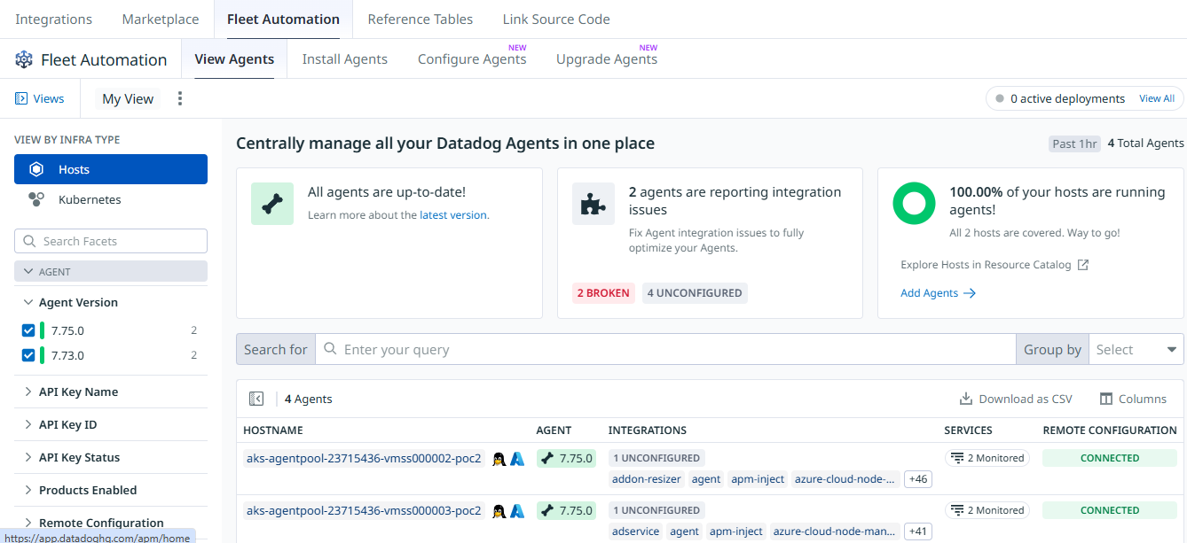 Integrations → Fleet Automation → View Agents