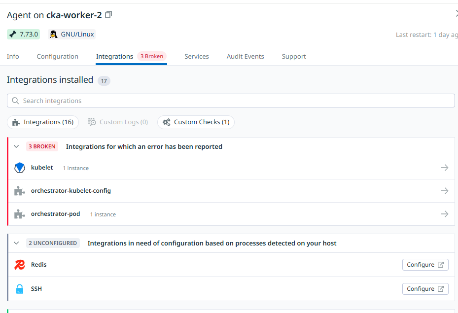 - Integration status shows Broken or Unconfigured